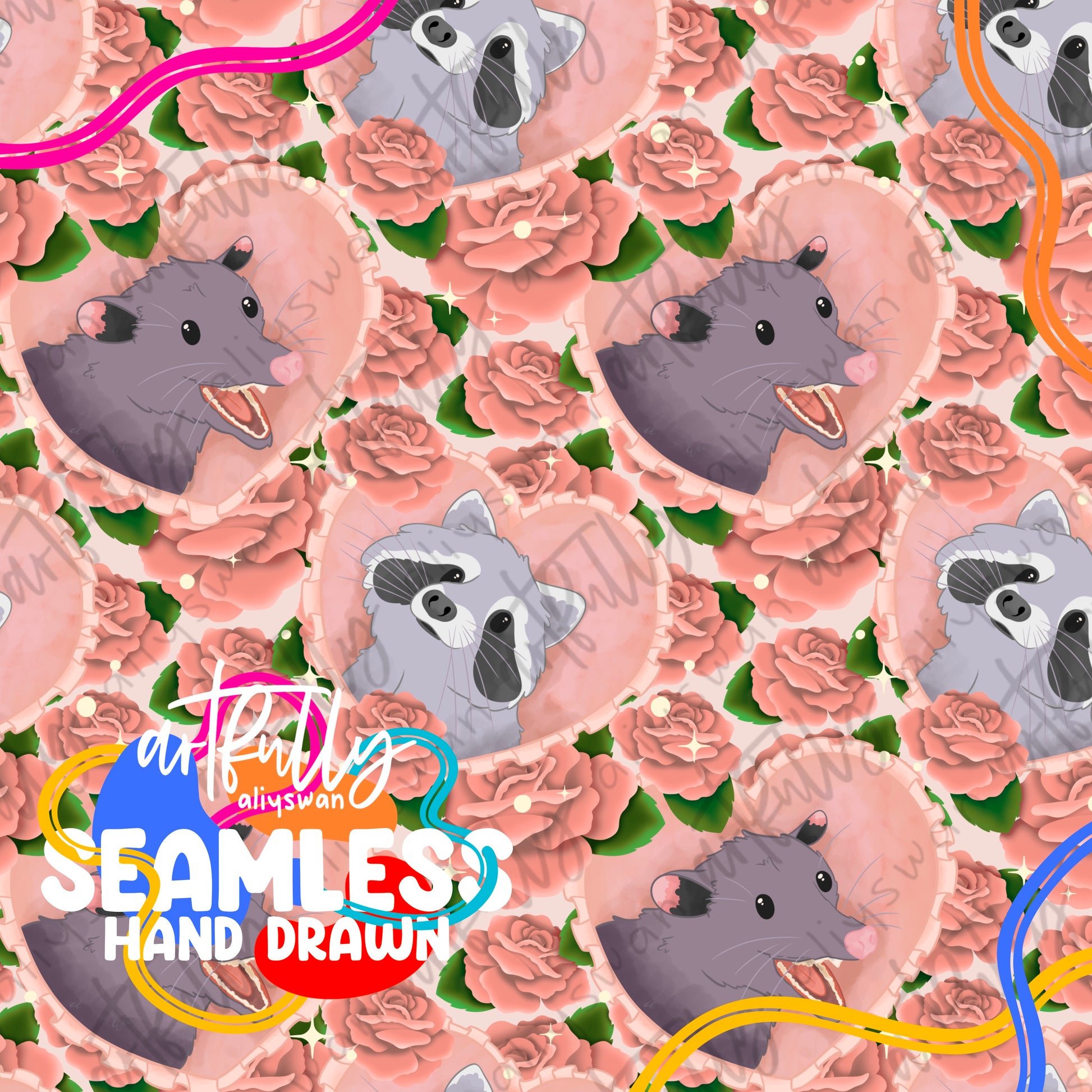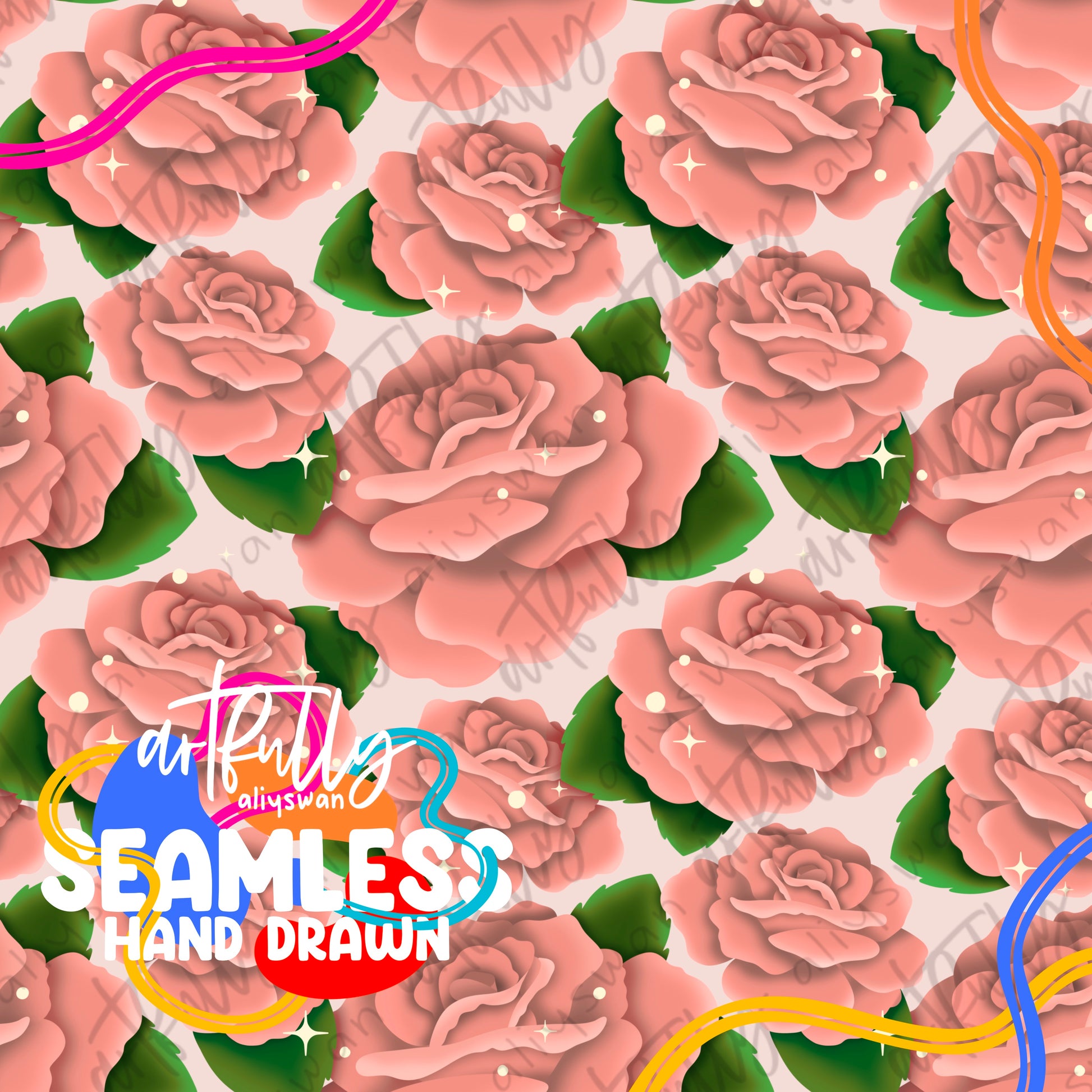 ONE (1) 300dpi HAND DRAWN seamless/PNG file