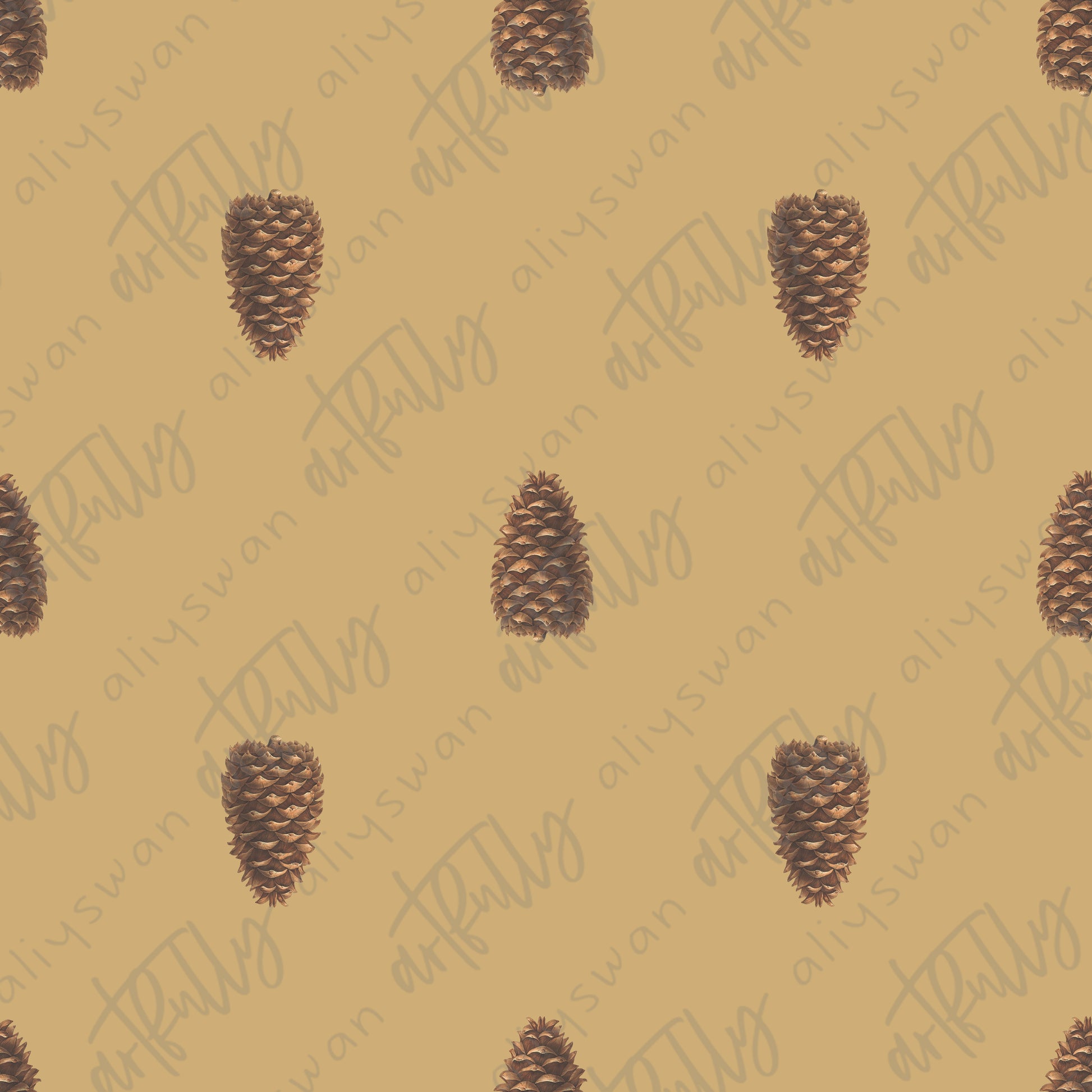 Vintage Style pinecones in a grid on a tan background. Coordinate to the Fall Butterflies collection.